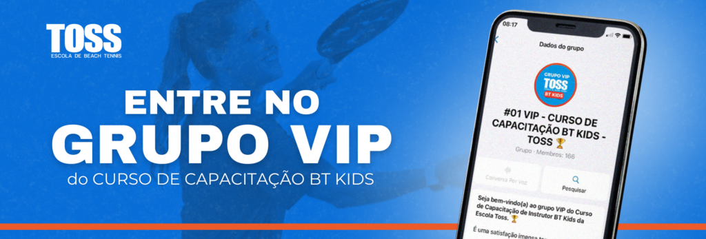 Clique aqui e entre para o GRUPO VIP agora mesmo! A Escola TOSS, junto da Instrutora Letícia Rabello, estão te esperando para dar o primeiro passo rumo ao seu sucesso como Instrutor de Beach Tennis Kids!